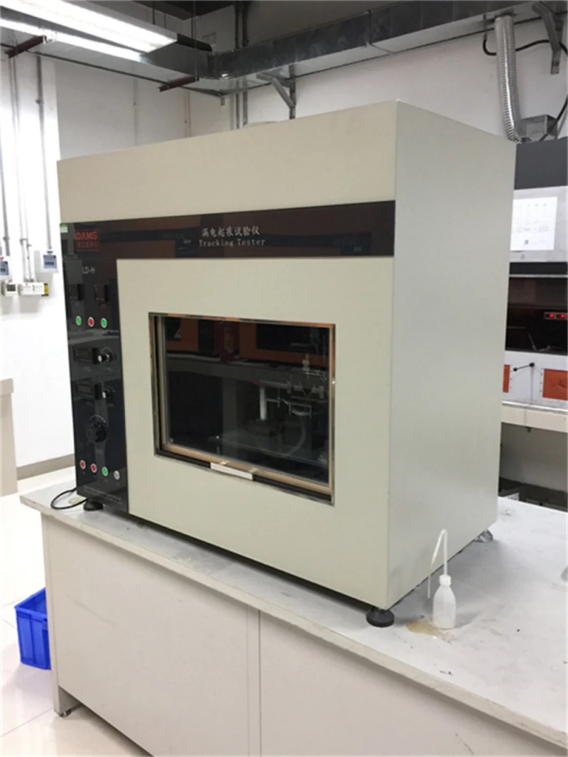 在電器產(chǎn)品受潮濕和雜質(zhì)環(huán)境的影響下,不同極性帶電部件之間或帶電部件與接地金屬之間可能會引起絕緣上的漏電,產(chǎn)生的電弧對電器造成擊穿短路或由于放電使材料電蝕損,甚至起燃導致火災。漏電起痕試驗就是模擬上述情況對絕緣材料進行的一種破壞性試驗,用以測量和評定在規(guī)定電壓下,絕緣體在電場和含雜質(zhì)水的作用時的相對耐漏電起痕性,適用于電工電子產(chǎn)品、家用電器的固體電器絕緣材料及其產(chǎn)品,如:繼電器插座、轉(zhuǎn)換開關蓋、接觸器等……。